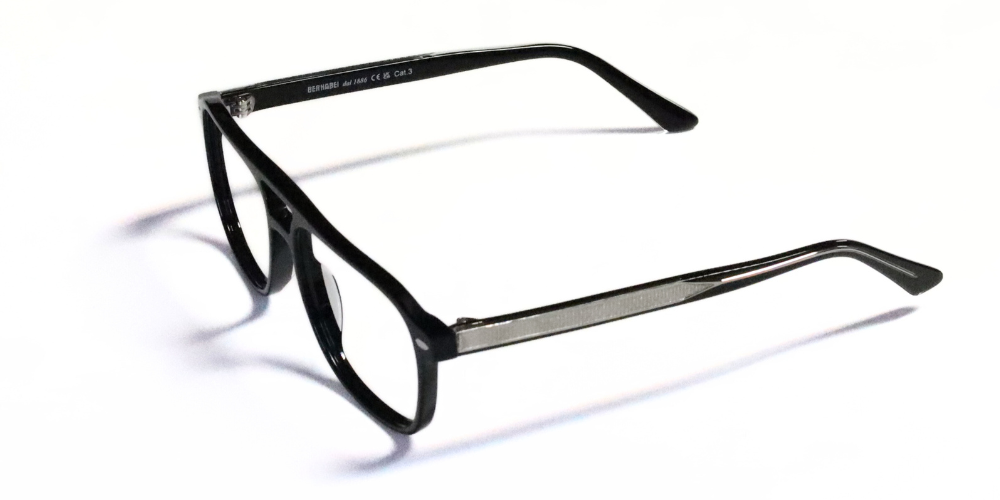Bernabei 5094 è una montatura da vista che riprende l’estetica degli anni Settanta attraverso un design a doppio frontale ispirato all’occhiale a goccia di matrice aviator. La forma è ampia ma equilibrata, con linee morbide e proporzioni studiate per dare carattere senza appesantire il volto.