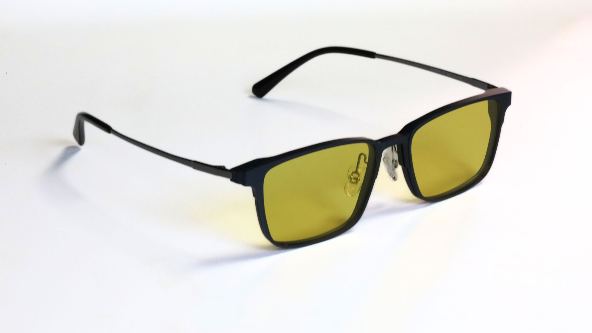 La montatura sottile e squadrata valorizza il viso con discrezione e mantiene un profilo tecnico ed essenziale, adatto sia all’uso quotidiano sia a contesti più formali. Il modello viene fornito con due clip da sole magnetiche incluse. La prima monta lenti grigio scuro, ideali per la protezione dalla luce intensa all’esterno. La seconda utilizza lenti gialle, pensate per migliorare il contrasto visivo e risultare utili in condizioni di luce variabile o durante la guida. Il sistema magnetico permette di applicare o rimuovere le clip in pochi secondi trasformando l’occhiale da vista in un occhiale da sole.