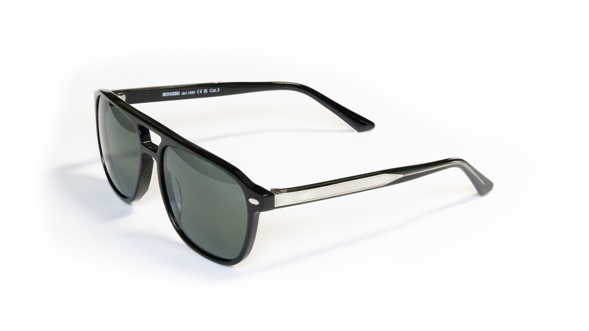 Montatura aviator a doppio ponte, calibro 54, costruita in acetato di cellulosa: un materiale leggero, resistente e a basso impatto. Linea pulita, volumi equilibrati, inserto argentato nelle aste che alleggerisce il profilo e definisce il dettaglio.