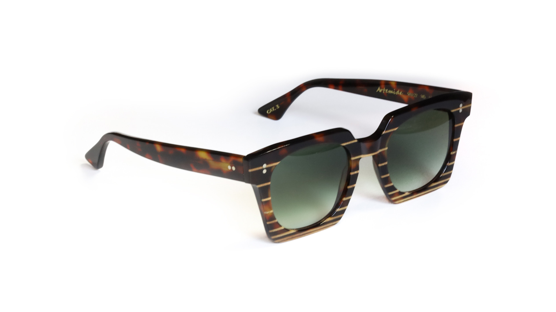 Artemide è il modello di occhiali da sole della linea Bernabei disponibile in moltissime, divertenti combinazioni. Montatura verde rigata in oro, tartarugata gialla, semplice, total black e molte altre. Combinale con le lenti che preferisci e indossa i gli occhiali da sole che ti rappresentano.  Artemide è un modello da sole Bernabei realizzato con materiale ecocompatibile. L'acetato di cellulosa è, infatti, un materiale naturale e versatile che offre una combinazione unica di resistenza, leggerezza e comfort. Derivato da fonti rinnovabili, unisce estetica e rispetto per l'ambiente, per un design allegro ma sempre semplice ed elegante.