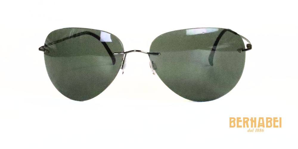 Occhiali da sole Bernabei con montatura in titanio e lenti verdi, progettati per garantire comfort visivo, leggerezza e stabilità nell’uso quotidiano.La struttura in titanio assicura un peso ridotto, un’elevata resistenza meccanica e una flessibilità controllata, caratteristiche che rendono la montatura adatta a un utilizzo prolungato senza affaticare il viso.